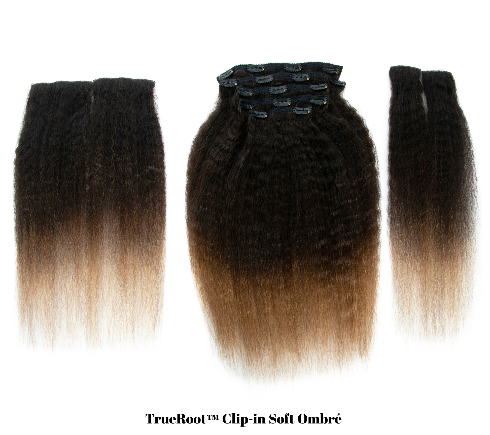 • Features 4 Patent Pending Luxury InvisiRoot™ Clip ins (AKA TrueRoot™ Clip-ins) (2 normal size, 2 extra small size for long bangs or other styles) and 5 traditional weft clip ins.